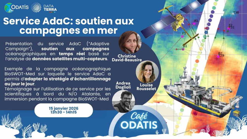En 2023, la campagne océanographique BioSWOT-Med a bénéficié de ce soutien qui a permis d’adapter la stratégie d’échantillonnage au jour le jour pour cibler des structures dynamiques et ainsi étudier leurs interactions avec le développement phytoplanctonique. Venez découvrir lors de ce webinaire, comment ce service a été utilisé par les scientifiques à bord du NO Atalante pour traquer un front et un tourbillon océanique, en immersion pendant la campagne BioSWOT-Med.