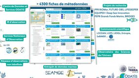 Le catalogue de données du pôle ODATIS permet d'accéder de manière centralisée aux données nationales de recherche sur l'Océan. Avec actuellement plus de 4000 jeux de données tous domaines confondus, l'équipe du pôle ODATIS continue de travailler à créer des passerelles avec les principaux entrepôts nationaux et européens pour tendre vers un catalogue le plus exhaustif possible de la production française des données des sciences de la mer.